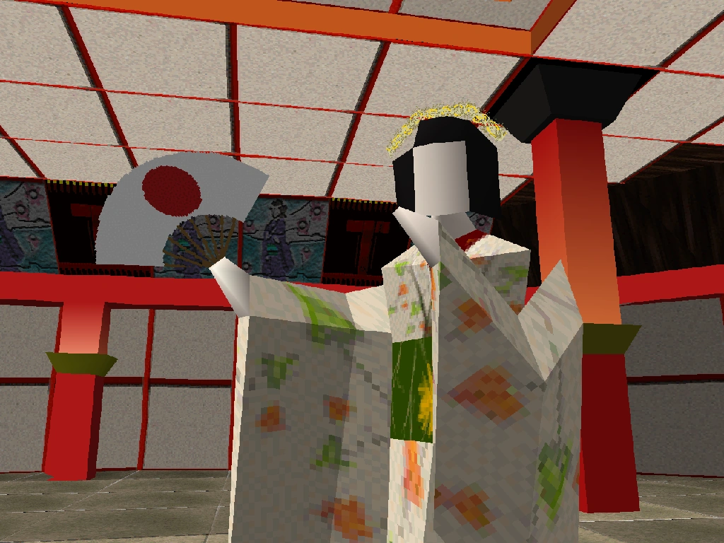 Dancing Maiko is an object in the Temple Dojo. It is a woman in a kimono holding a fan.