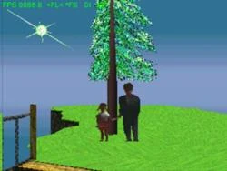 The Father and Daughter appear in The Natural World on a tiny island. Linking with the tree behind them will take you to the Long Hallway.