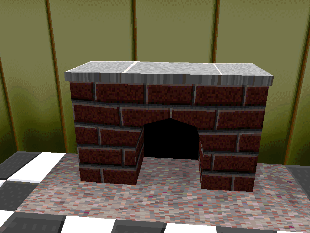 The Fireplace's bricks have a red dot texture over black bricks. The top appears slightly brighter than usual but keeps the same texture. The base is a gradient of bright red to dark red.