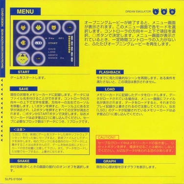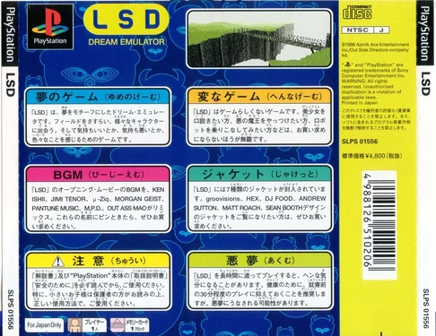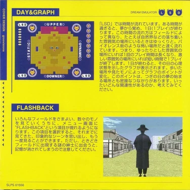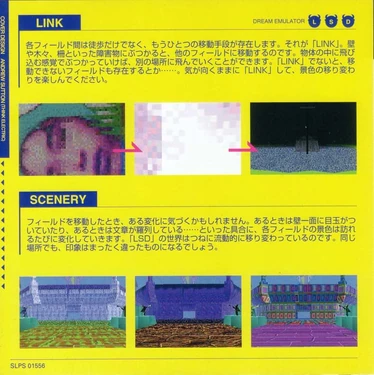 The Instruction Booklet is a official game instruction manual that may provide help with LSD: Dream Emulator. The Booklet is entirely in Japanese. It comes with a copy of the either limited or normal version of LSD: Dream Emulator.