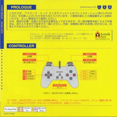 Thank you for purchasing the PlayStation CD-ROM "LSD" from Asmik Ace Entertainment. Please read this instruction manual carefully before use and enjoy using it correctly.