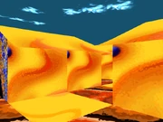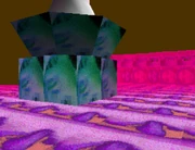 A floating woman in a red kimono with a white shawl. She can be found inside buildings or outside in the sky. She links to Happy Town.