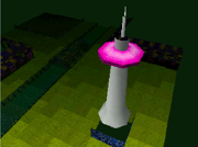 A white more modern tower that can be found in a clearing. It has a dynamic link.