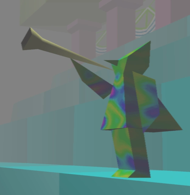 Trumpeters are toy-like objects that spawn on the two sets of grandstands outside of the castle in Happy Town on A-type days of the game. They will always play their trumpets when approached. Players cannot link with the trumpeters directly, but with the blue staircases they stand on instead. The stairs will link to Sun Faces Heave, and is one of the only ways of getting there.