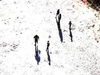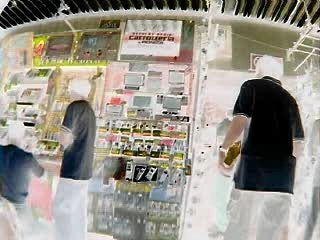 A color inverted view of a marketplace, the camera walks around until it inspects a lightbulb being held. The bulb then sparks red, and it becomes more intense until the dream ends. |